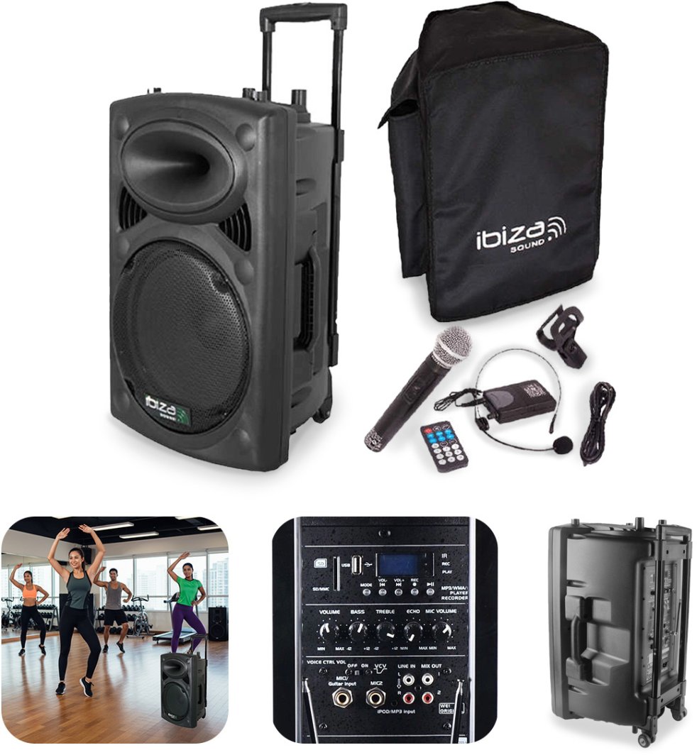 Kolumna mobilna Ibiza PORT15VHF-BT to wszechstronny system nagłośnieniowy, który łączy w sobie potężną kolumnę aktywną z wbudowanym odtwarzaczem MP3, equalizerem oraz dwoma mikrofonami bezprzewodowymi. Dzięki swojej funkcjonalności, stanowi doskonałe rozwiązanie na imprezy plenerowe, karaoke czy prezentacje.