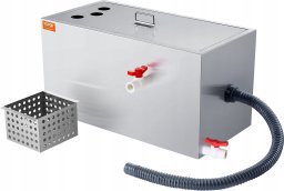 Separator tłuszczu wyróżnia się wysoką jakością wykonania, co sprawia, że jest odporny na rdzę oraz korozję. Wykonany z solidnej stali nierdzewnej o grubości 1,2 mm, jest łatwy do czyszczenia, co zapewnia długotrwałe użytkowanie. Dodatkowo, gwintowany wylot odpływowy oraz gumowy pierścień wewnątrz pokrywy gwarantują niezawodne uszczelnienie, skutecznie zapobiegając wyciekom.