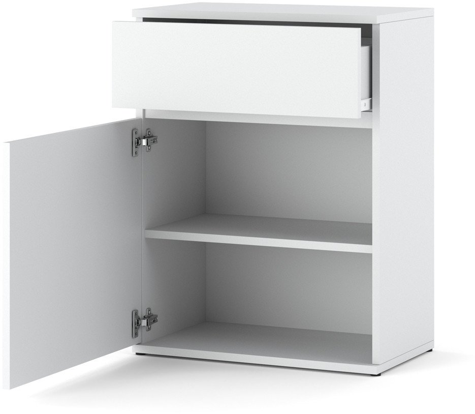 Komoda Biała Z Szufladą Salon Sypialnia Szafka 60cm Nowoczesna Bezuchwytowa