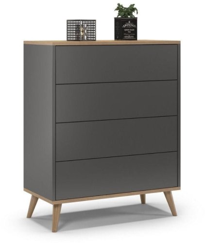 Komoda do salonu, sypialni, SKAND, 80x40x100 cm, dąb, grafit, mat