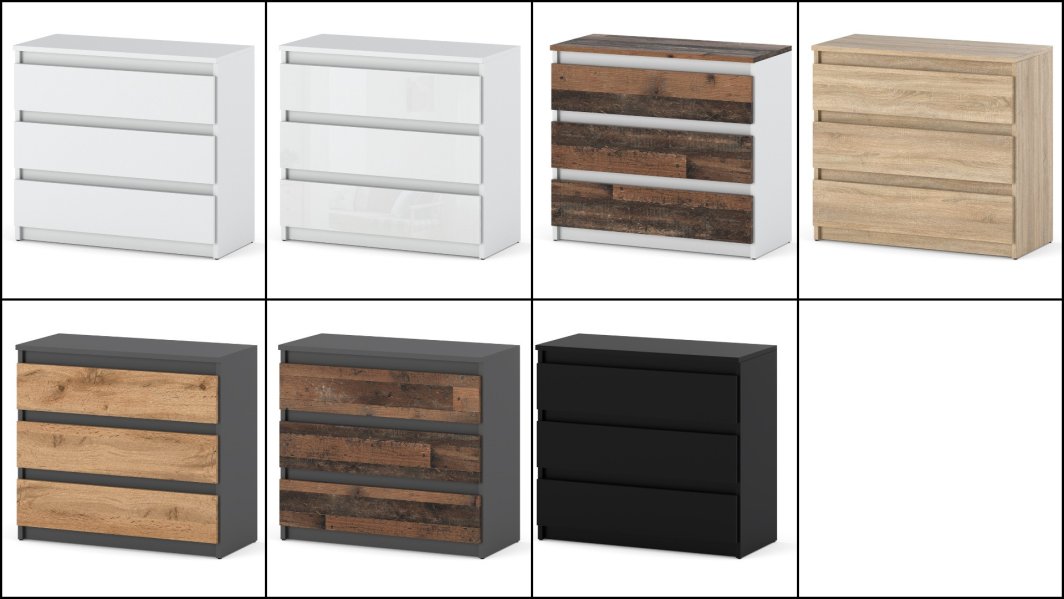 Wykonana z płyty laminowanej o grubości 16 mm oraz tylnej płyty HDF, komoda zapewnia trwałość i stabilność. Jej nowoczesny wygląd oraz wysoka jakość materiałów czynią ją nie tylko praktycznym, ale i estetycznym elementem wyposażenia wnętrz.