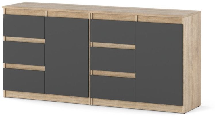 Komoda Z Szufladami Pojemna Nowoczesna Szafka 160cm Dąb Sonoma Szary Mat