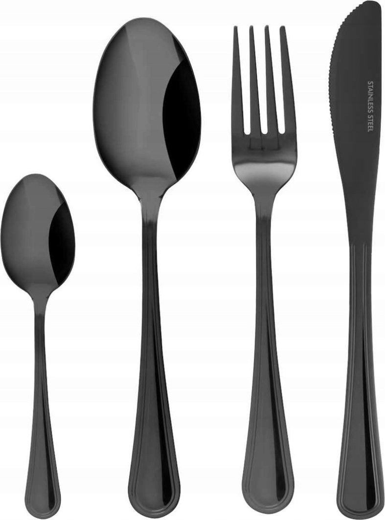 Zestaw sztućców Luce Black marki Kulig wykonany został z wysokogatunkowej stali nierdzewnej 18/0. Jest niezwykle solidny i trwały, mimo wieloletniego użytkowania nadal wygląda jak nowy. Zestaw dla 6 osób, zawiera łyżki, widelce, noże oraz łyżeczki do herbaty.