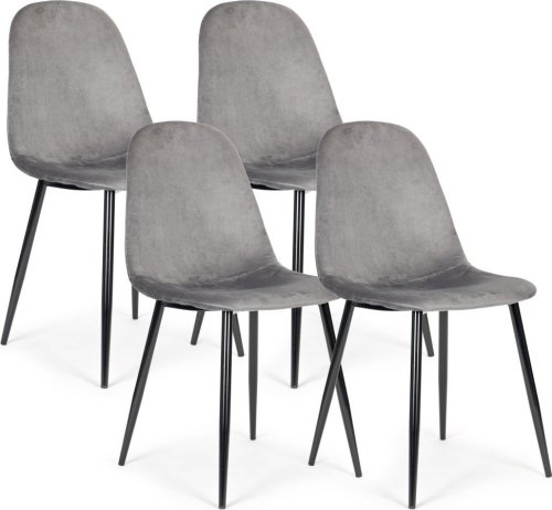 Komplet 4 krzeseł welurowych krzesło do jadalni i salonu - szare