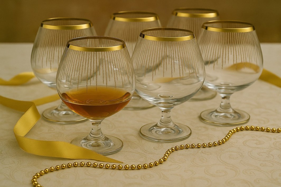 Eleganckie kieliszki do koniaku od polskiej marki COMBI to doskonały wybór dla miłośników wyjątkowego wzornictwa i najwyższej jakości wykonania. Każdy egzemplarz powstaje z wysokogatunkowego szkła i jest ręcznie zdobiony w odcieniu złota — subtelne, opadające linie tworzą efekt lekkich, złotych nici, które dodają całości wyrafinowanego uroku.