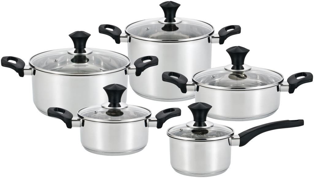 Wykonany z wysokiej jakości stali nierdzewnej (18/10), zestaw garnków charakteryzuje się wielowarstwowym dnem, które doskonale przewodzi ciepło i utrzymuje optymalną temperaturę potraw.
