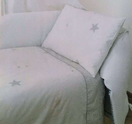 Materiał, z którego wykonany jest komplet, posiada odpowiednie certyfikaty, co czyni go bezpiecznym dla dzieci. Delikatna tkanina reguluje temperaturę ciała, co jest kluczowe dla zdrowego snu. Innowacyjne połączenie wzorów drukowanych z haftowanymi stymuluje wyobraźnię dziecka, tworząc przytulne i bajkowe otoczenie w pokoju dziecięcym.
