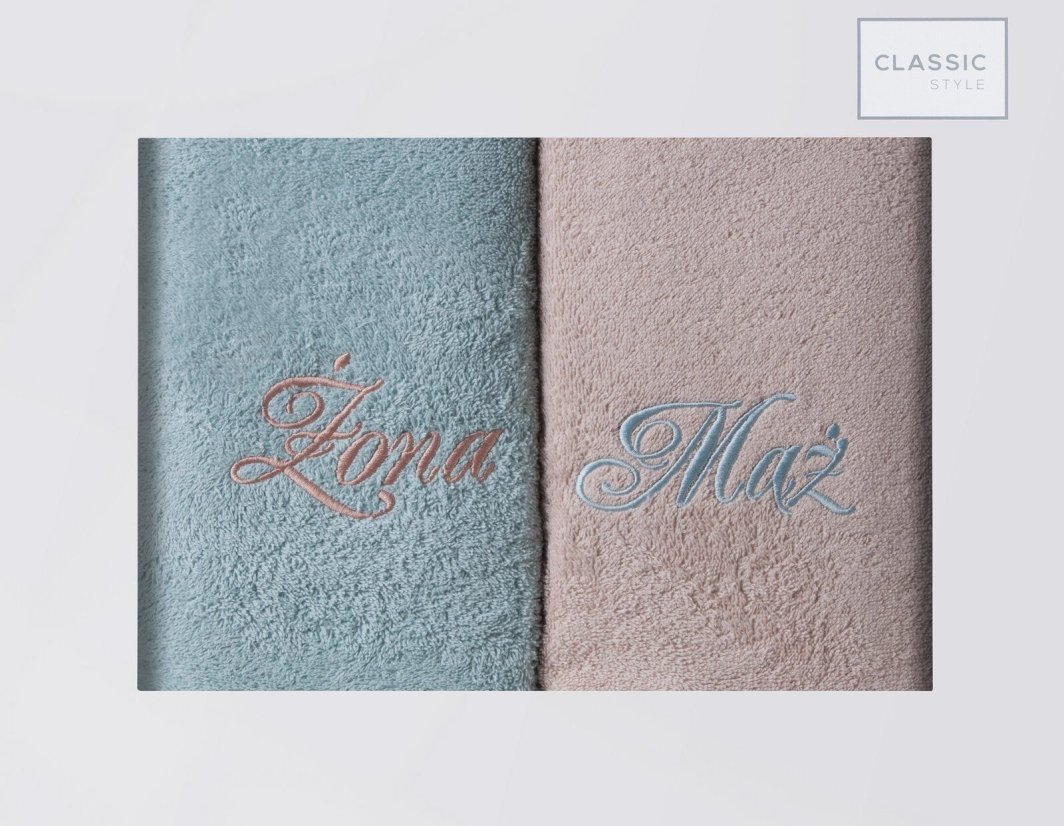 Komplet ręczników w pudełku Mąż i Żona 50x90 pudrowy+miętowy