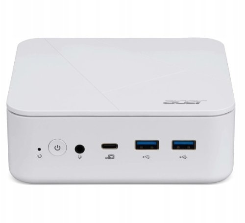 Mini PC Acer Revo Box RB102-14H7U to doskonałe rozwiązanie dla tych, którzy poszukują efektywnego i nowoczesnego komputera stacjonarnego w niewielkim wydaniu. Jego elegancki, biały design sprawia, że idealnie wkomponuje się w każde wnętrze, a kompaktowe wymiary (131 x 43 x 131 mm) oraz waga wynosząca zaledwie 1 kg umożliwiają łatwe przenoszenie i umiejscowienie w różnych przestrzeniach roboczych.