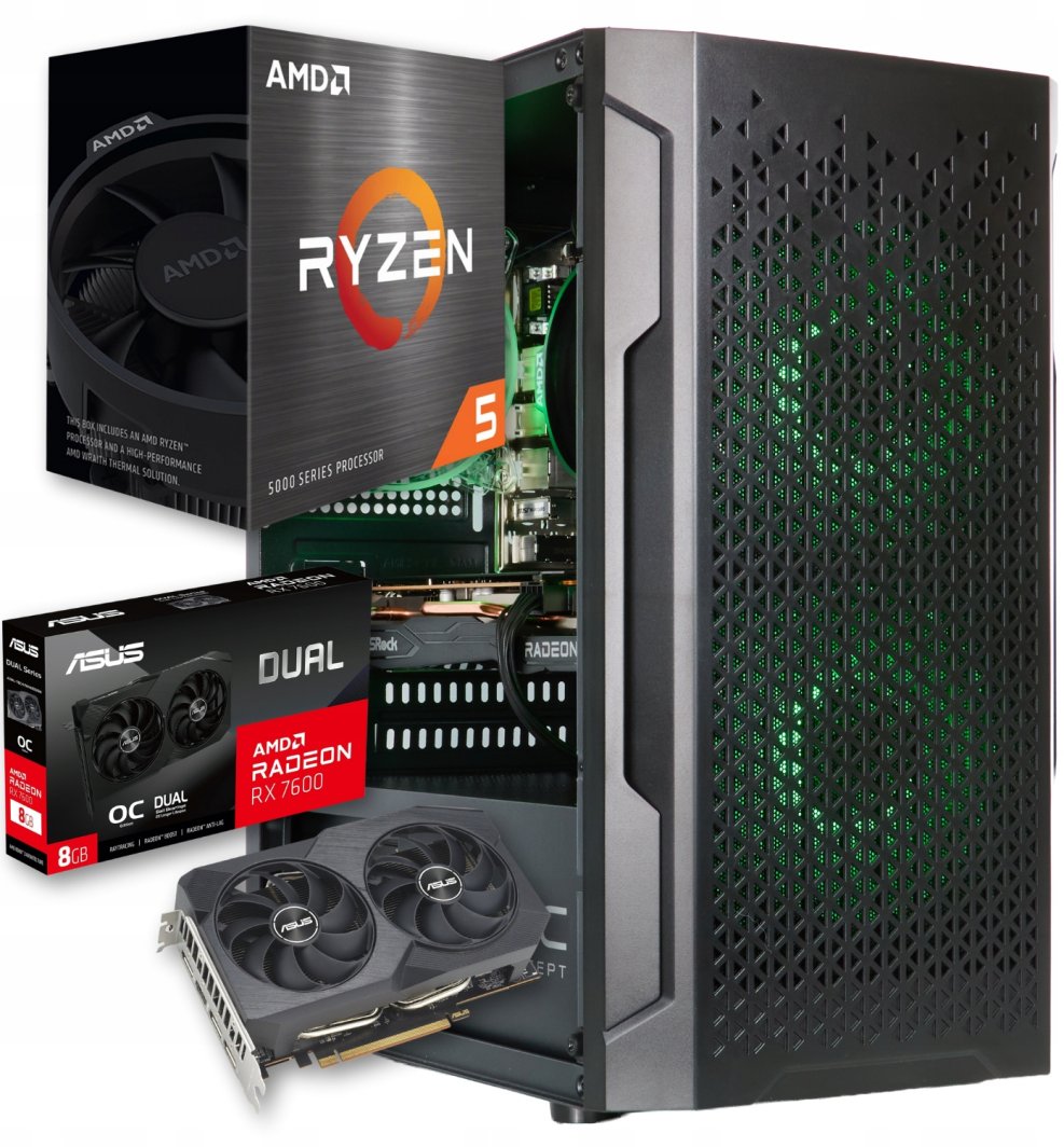 Karta graficzna Radeon RX 7600 to nowoczesny komponent oparty na architekturze RDNA 3, zaprojektowany do płynnej rozgrywki w rozdzielczości 1080p, a w wielu tytułach również 1440p. Wyposażona w 8 GB pamięci GDDR6, oferuje doskonały balans między wydajnością a efektywnością energetyczną, obsługując Ray Tracing oraz technologię AMD FSR.