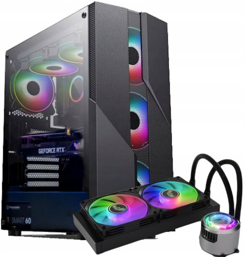 Ten komputer jest wyposażony w wydajne chłodzenie wodne AIO 240 mm oraz sześć wentylatorów RGB LED, co zapewnia skuteczne odprowadzanie ciepła. Dzięki temu zarówno procesor, jak i karta graficzna mogą działać na pełnych obrotach, co przekłada się na lepszą wydajność w grach.