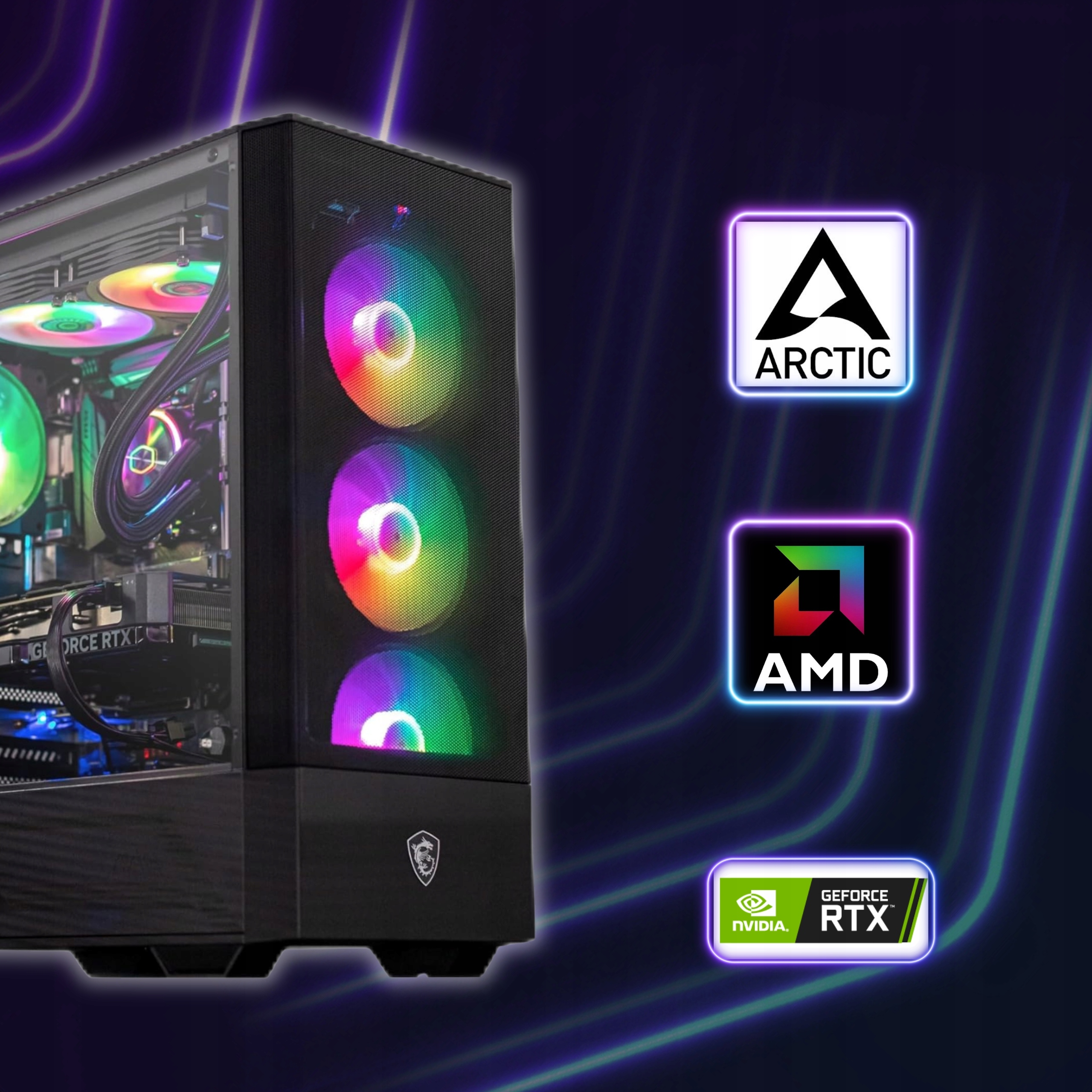 MSI MAG FORGE 112R czyli 4 ciche i trwałe wentylatory Stratus 120PWM ARGB zamknięte w solidnej obudowie z panelem bocznym z hartowanego szkła oraz przednim z siatki mesh.