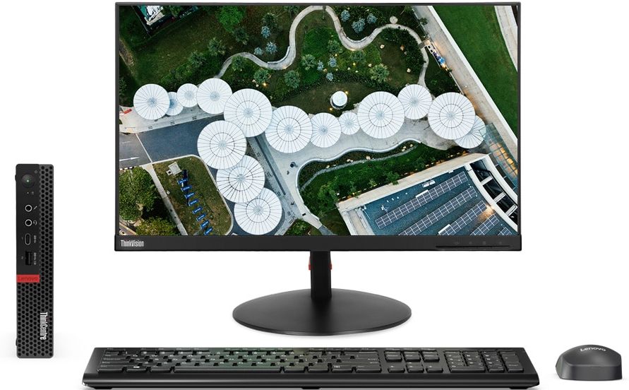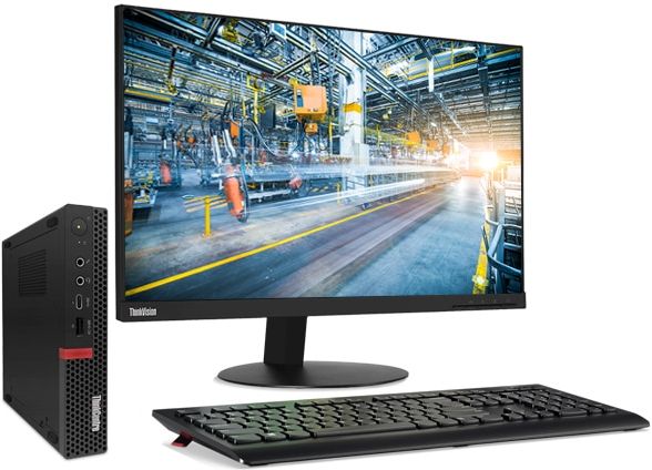 M75q Tiny zajmuje mniej miejsca na blacie. Ten elegancki, zaledwie litrowy komputer mieści się praktycznie wszędzie — na ścianie, pod biurkiem czy za monitorem.