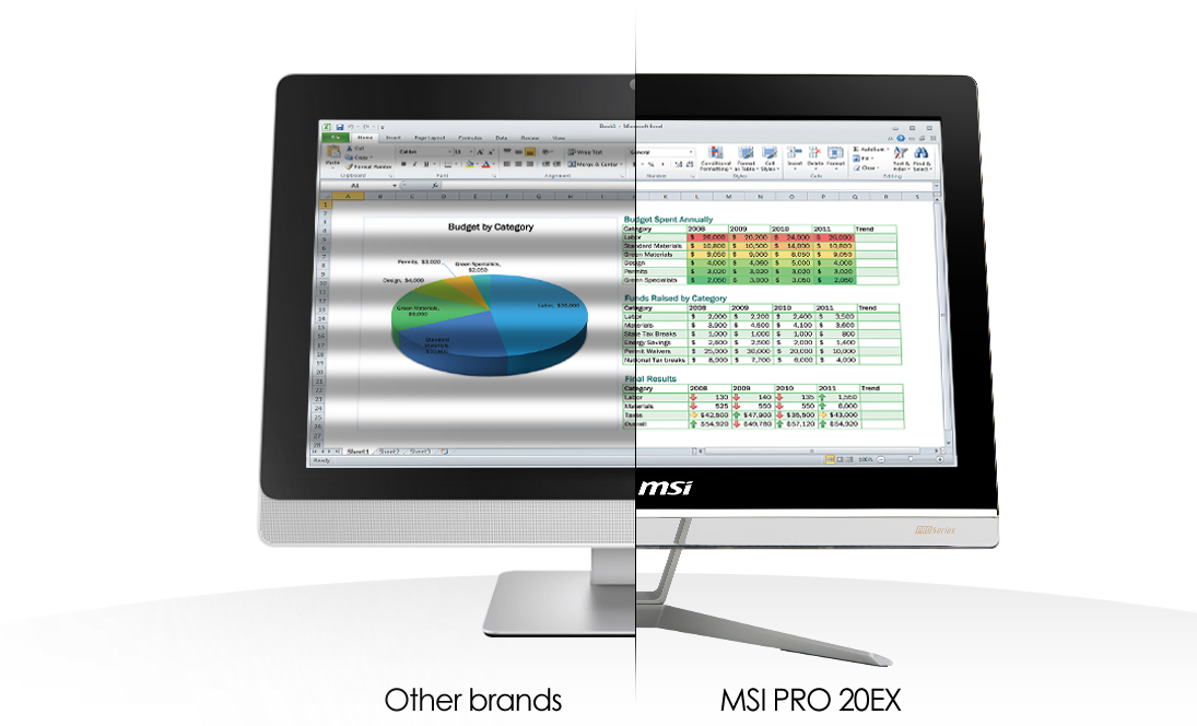 Dzięki wyjściom wideo (HDMI), MSI PRO 20EX 8GL może jednocześnie obsługiwać do dwóch dodatkowych, zewnętrznych monitorów. W ten sposób komputer ten pozwala zwiększyć wydajności pracy, oferując więcej możliwości w wielu różnych sytuacjach.