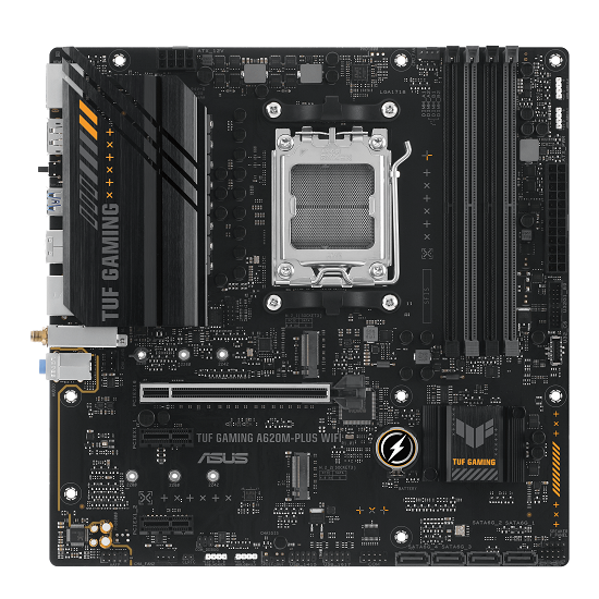 ASUS TUF GAMING A620M-PLUS WIFI wykorzystuje wszystkie najważniejsze elementy procesorów AMD Ryzen z serii 7000 i łączy je z funkcjami gotowymi do gier oraz sprawdzoną wytrzymałością. Wyposażona w komponenty klasy wojskowej, ulepszone rozwiązanie zasilania i kompleksowy system chłodzenia, ta płyta główna wykracza poza oczekiwania dzięki solidnej i stabilnej wydajności do maratonów gier.