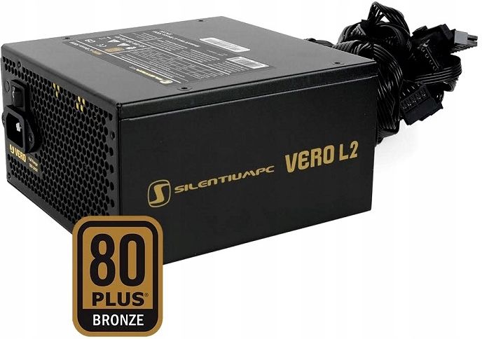 Zasilacz SilentiumPC Vero L2 Bronze 500 W to nowoczesna platforma wykorzystującą układ rezonansowy LLC oraz niezależną regulację napięć wyjściowych. Zapewnia to bardzo dobrą stabilność napięć, a także wysoką sprawność energetyczną przekraczającą 85%, co zostało potwierdzone certyfikatem 80 PLUSBronze.