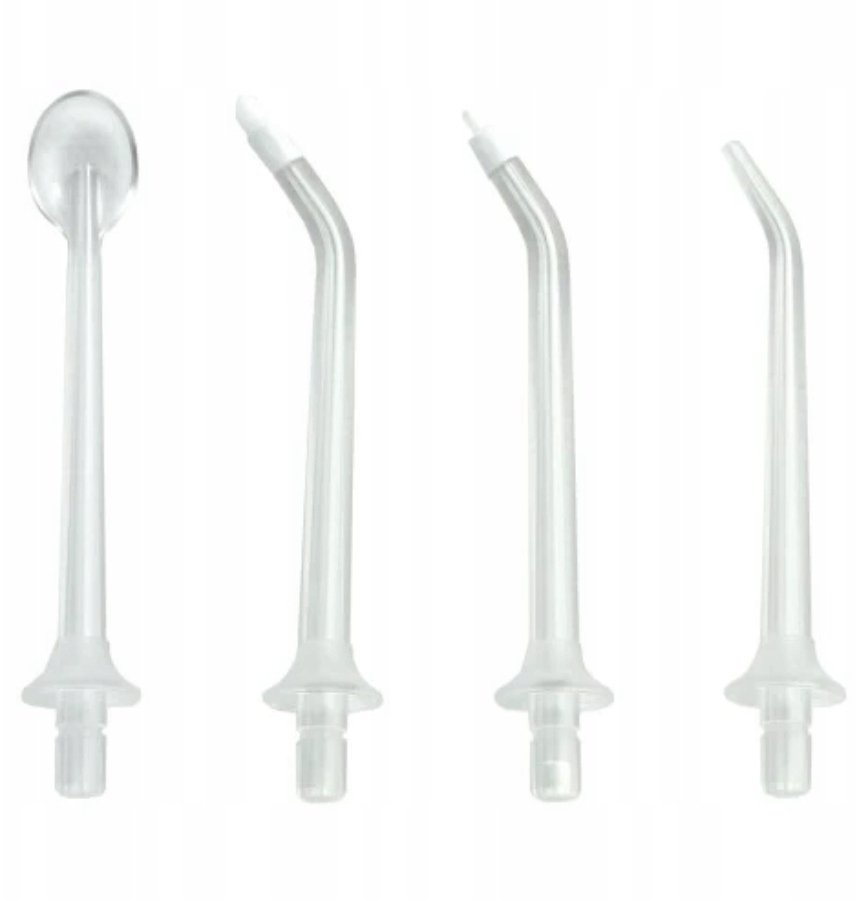 W skład zestawu DYSZE ACC 075 wchodzą cztery różne końcówki, które umożliwiają skuteczne oczyszczanie jamy ustnej. Każda z nich ma swoje unikalne zastosowanie, co sprawia, że ten zestaw jest niezwykle wszechstronnym akcesorium do codziennej pielęgnacji.
