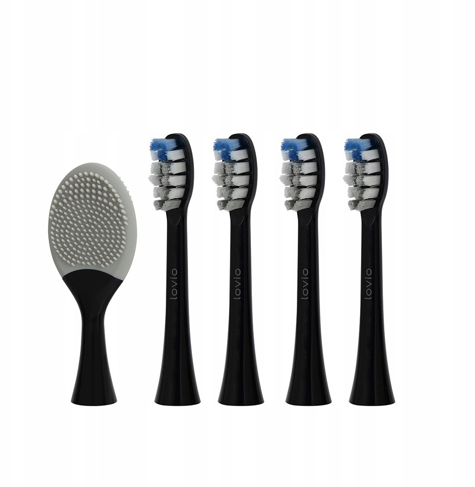 Końcówki do szczoteczki sonicznej LOVIO SonicProtect PRO to znakomite akcesoria, które gwarantują efektywne i delikatne czyszczenie zębów oraz pielęgnację twarzy. W zestawie znajduje się pięć końcówek w eleganckim czarnym kolorze, łączących nowoczesny design z funkcjonalnością.