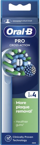 Główki Oral-B Pro Cross Action są wyposażone w technologię Clean Maximiser, która zapewnia efektywne czyszczenie. Unikalny kąt nachylenia włosia wynoszący 16° oraz ponad 2200 włókien w kształcie X skutecznie docierają do trudno dostępnych miejsc, co gwarantuje dokładniejsze czyszczenie. Dodatkowo, włosie zmienia kolor na żółty, co sygnalizuje, kiedy należy wymienić główkę.