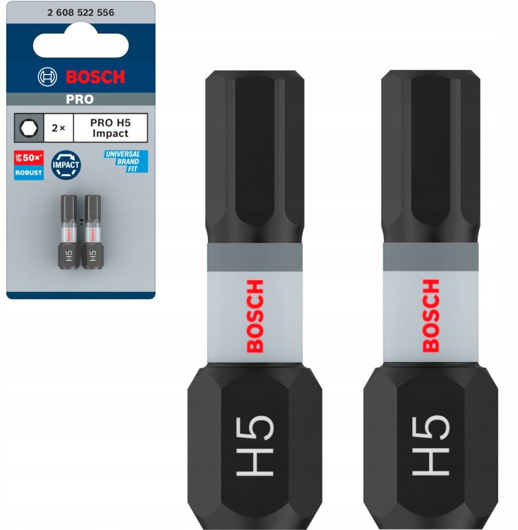 Końcówki wkręcające Bosch PRO H5 Impact wyróżniają się niezwykłą trwałością, co jest wynikiem zastosowania modyfikowanej stali S2 oraz zoptymalizowanego procesu obróbki cieplnej. Dzięki temu, bity te są odporne na intensywne użytkowanie, zapewniając długotrwałą wydajność.