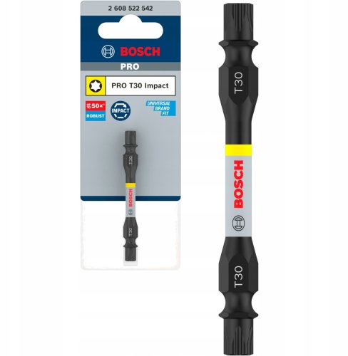 Końcówka wkręcająca PRO T30 Impact od firmy Bosch to znakomite narzędzie, które sprawdzi się w każdym warsztacie. Jej dwustronna konstrukcja oraz długość 65 mm czynią ją idealnym rozwiązaniem do intensywnego użytkowania, zarówno w przypadku wkrętarek udarowych, jak i tradycyjnych. Wybierając ten produkt, inwestujesz w jakość i niezawodność, które są kluczowe w codziennych pracach.