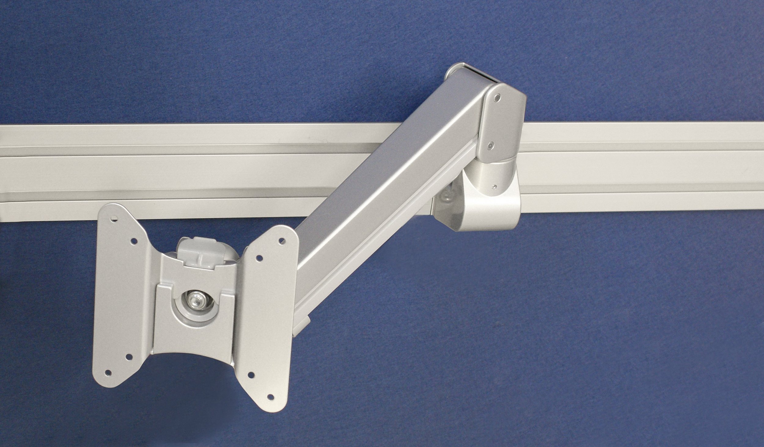 Ramię z gazowym sprężynowym mechanizmem o 3 przegubach i zasięgu 300 mm. Udźwig monitora: 3-8 kg. VESA 75 x 75 oraz 100 x 100 mm.