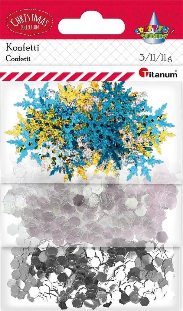 • Rodzaje konfetti: gwiazdki 35 mm, okrągłe 7 mm, sześciokąty 6 mm