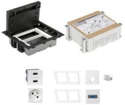 KONTAKT SIMON FLOOR BOX puszka podłogowa 1x gniazdo pojedyncze z/u + 1x USB ładowania + 1x gniazdo RJ45 kat. 6 + 1x VGA + kaseta