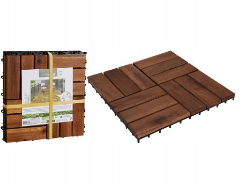 Płytki wykonane z wysokiej jakości drewna akacjowego wyróżniają się pięknym wykończeniem w stylu teak, co nadaje im ciepły i nowoczesny wygląd. Drewno akacjowe jest znane ze swojej trwałości oraz odporności na różnorodne warunki atmosferyczne, co czyni te płytki doskonałym wyborem do użytku na zewnątrz.