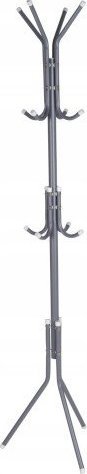 Wieszak podłogowy, metalowy w kolorze szarości w matowym wykończeniu. Wieszak wyposażony w 12 haczyków. Idealny do przedpokoju, korytarza, łazienki. Haczyki w wieszaku umieszczone na różnych wysokościach. Wieszak pomieści płaszcze, kurtki, torby.