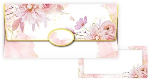 Koperta wyróżnia się romantycznym wzorem w subtelnych odcieniach różu, co dodaje jej uroku i czyni ją wyjątkową. Delikatne kwiaty zdobiące powierzchnię koperty przyciągają wzrok i nadają jej subtelny charakter, idealny na każdą okazję.