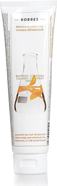 KORRES Repairing Hair Mask przeznaczona jest do pielęgnacji włosów farbowanych. Odżywia włosy oraz sprawia, że stają się gładkie i lśniące. Wyciąg ze słonecznika i herbaty górskiej (naturalne źródło polifenoli) chroni kolor przed blaknięciem spowodowanym częstym myciem głowy, stosowaniem produktów do stylizacji oraz eksponowaniem włosów na słońce. Kompleks protein z hydrolizatu pszenicy i oligosacharydów oraz lawenda morska nawilżają i odżywiają włosy bez ich obciążania. Sprawiają, że włosy łatwo się rozczesują i nie elektryzują się. Prowitamina B5 i witamina B3 regeneruje włosy i zapewnia im elastyczność.