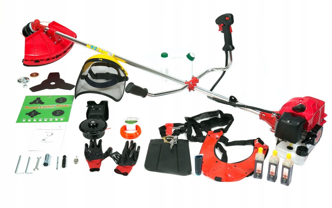 W zestawie z kosą znajdują się różne ostrza, szpula z zapasową żyłką, szelki nośne oraz profesjonalny smar do przekładni. Dzięki temu użytkownik otrzymuje wszystko, co potrzebne do efektywnej i bezproblemowej pracy.