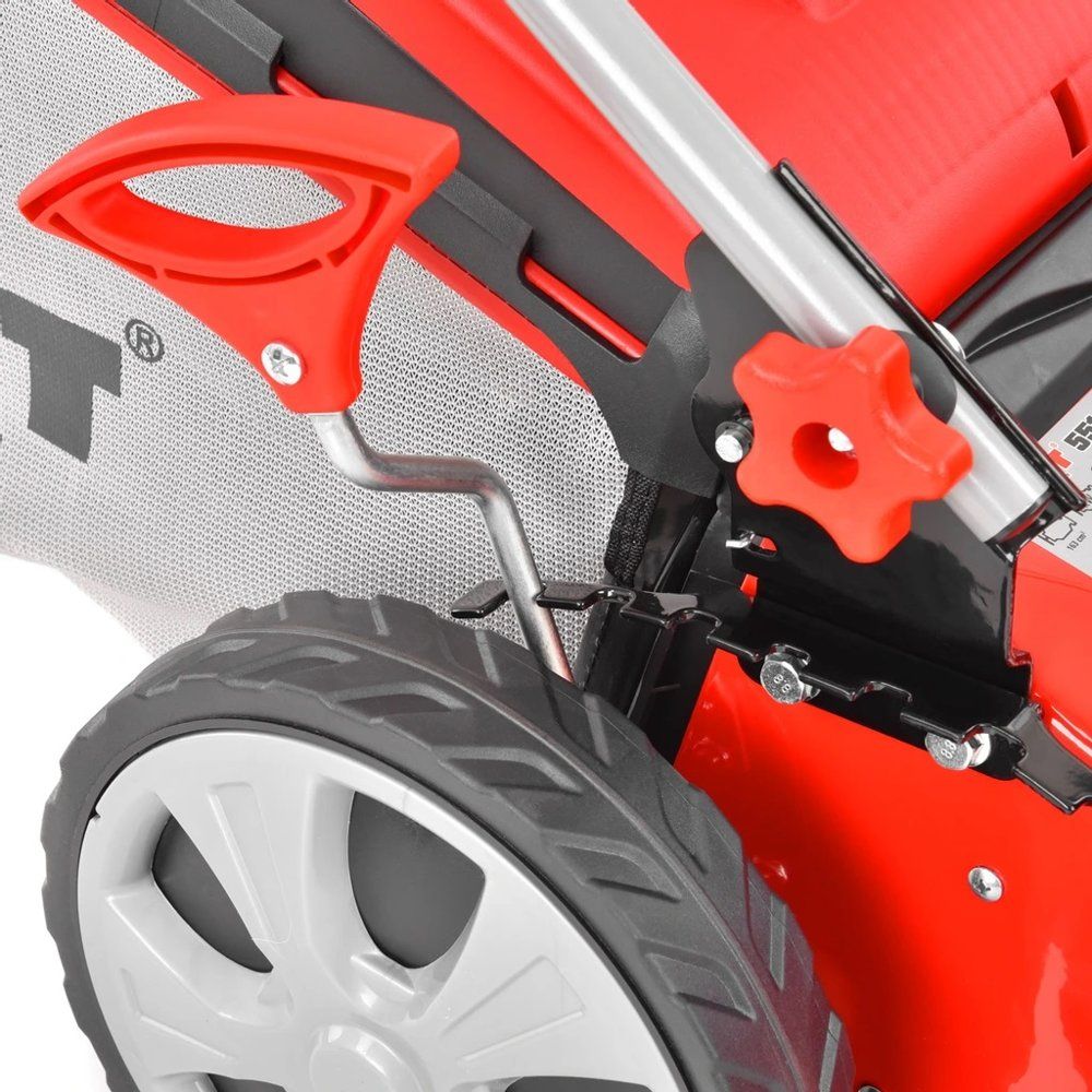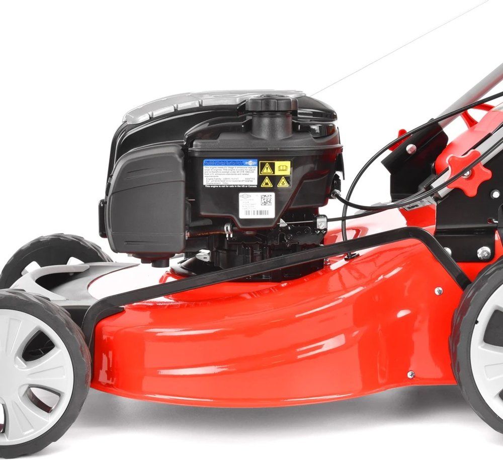 Urządzenie wyposażono w mocny silnik Briggs & Stratton seria 675 EXi series o pojemności skokowej 161cm3. Silnik ten zapewnia płynną i niezwodną pracę, natomiast wbudowany napęd znacznie ułatwia prowadzenie i manewrowanie kosiarką. Warto również zwrócić uwagę na zastosowanie w urządzeniu kół łożyskowanych, które znacznie zmniejszają opór toczenia. Zastosowanie takiego rozwiązania zapewnia nam bardzo dobrą trakcję nawet na nierównym terenie. Oczywistą zaletą kosiarki spalinowej jest brak uciążliwego kabla zasilającego.