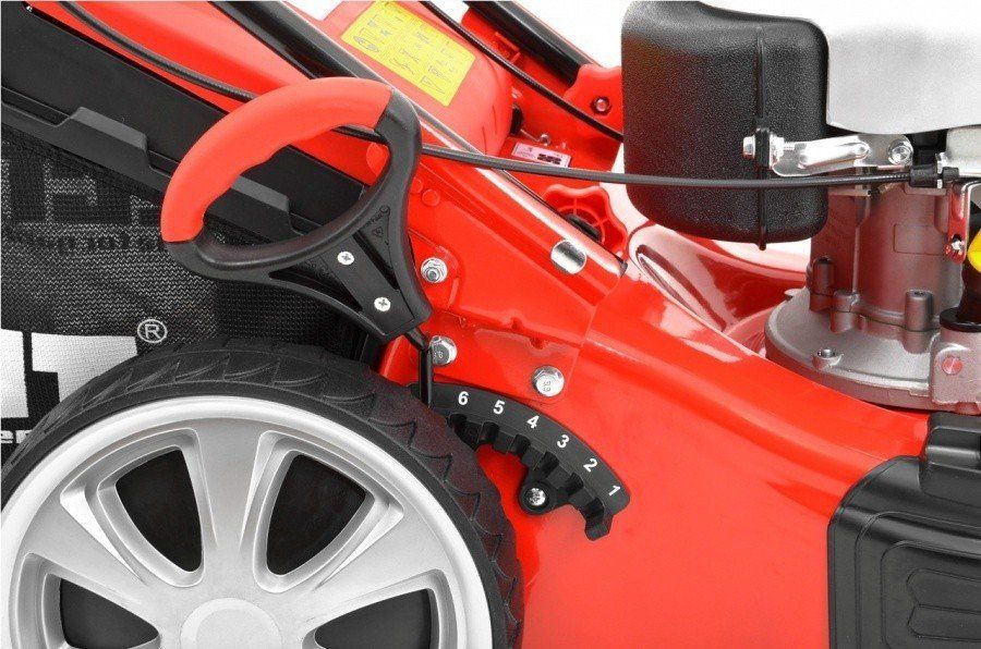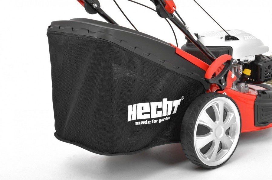 Jednostką napędową urządzenia jest sprawdzony silnik HECHT OHV o pojemności 173 cm3 oraz mocy 6 KM z momentem obrotowym 10 Nm / 2600 obr.min. Taka pojemność silnika, zapewnia wystarczają moc zarówno do samego koszenia, jak i napędu tylnych kół, rozwijając prędkość około 3,6 km/h. Stabilna i solidna obudowa zaopatrzona została w otwór z zaślepką do wyrzutu bocznego. Do zestawu dołączony jest również tunel boczny, który umożliwia koszenie trawy w trybie wyrzutu bocznego. Takie rozwiązanie sprawia, że możemy kosić trawę bez użycia kosza, szczególnie pod czas pracy na dużych zarośniętych powierzchniach.