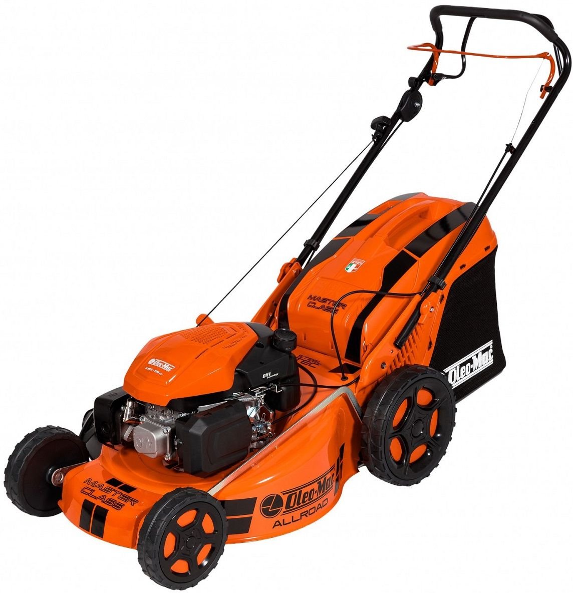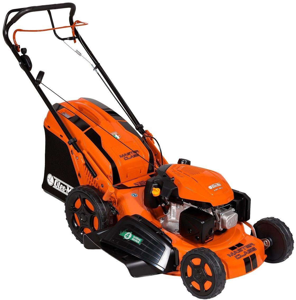Kosiarki Oleo-Mac w nowej odsłonie MASTER CLASS (GMC). Wytrzymałe i pełne sportowego wigoru, nie tylko jeśli chodzi o wygląd, ale przede wszystkim podczas pracy. Kosiarka Spalinowa OLEO-MAC GMC 53 TK Allroad 4 66079171E5 z Napędem, stalową obudową, o szerokości cięcia 51 cm, charakteryzuje się mechanizmem tnącym typu “4 cutting device”, który oprócz zbierania obsługuje tryb rozdrabniania i umożliwia wyrzut boczny. Maszyny te wyposażone są w koła, które łączą w sobie tradycyjne zalety modeli wykonanych z blachy z większą płynnością jazdy również na nierównych terenach.