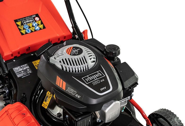 Sercem kosiarki jest bezawaryjny i mocny silnik OHV górnozaworowy o dużej mocy znamionowej 2,6 kW oraz pojemności (150 cm3), który uruchamia się w szybki i prosty sposób. Nowoczesny i wydajny silnik spalinowy 4-suwowy jest w stanie zagwarantować długą żywotność sprzętu. Przy właściwym użytkowaniu i eksploatacji zapewni poprawne funkcjonowanie kosiarki przez długie lata. Pojemność zbiornika paliwa umożliwi długą i efektywną pracę bez konieczności częstego dolewania paliwa.