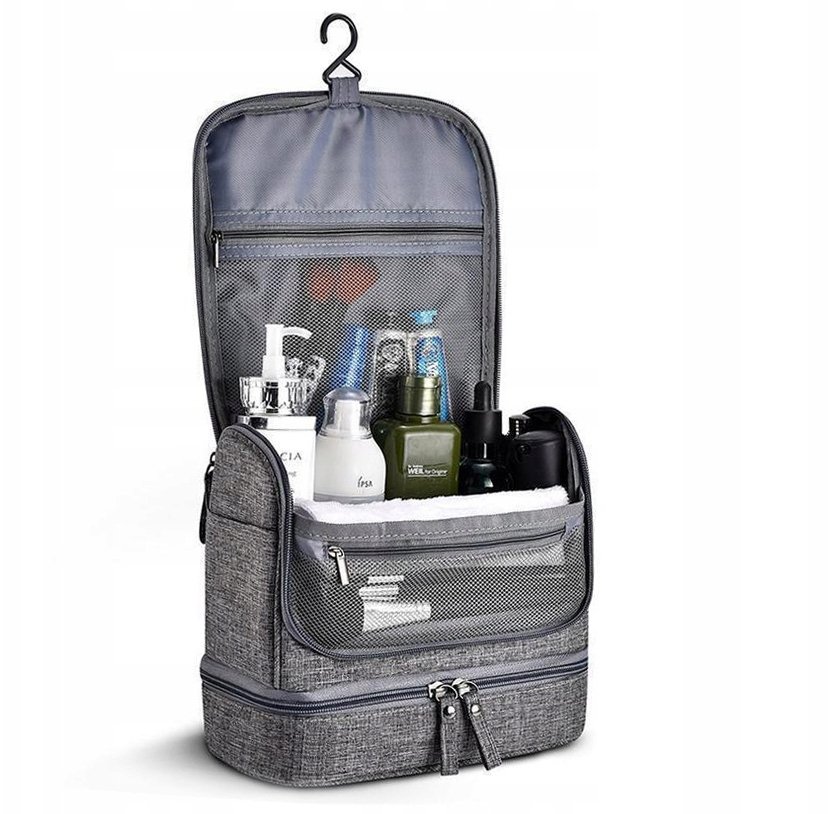 KOSMETYCZKA MĘSKA SZARA POJEMNA KOSMETYCZKA PODRÓŻNA WYJAZD DUŻA Z HAKIEM