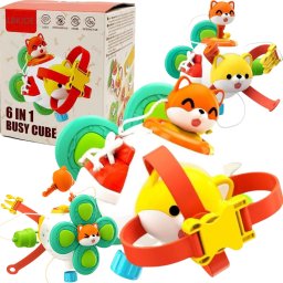 Na każdej z sześciu ścian zabawki znajduje się wyjątkowa funkcja. Na jednej z nich znajduje się śliczna, duża głowa żółtego liska za dwoma zapięciami. Zapięcia będą ciekawym wyzwaniem dla dziecka, a lisek będzie zachęcał dziecko do pokonania tego wyzwania. Każde z zapięć występuje w codziennym środowisku i są zaprojekowane na odpowiednim poziomie trudności dla małych dzieci.
