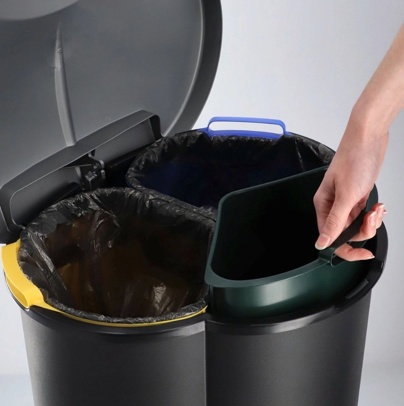 Kosz do segregacji śmieci z pedałem Trio to doskonałe rozwiązanie dla każdego, kto chce utrzymać porządek i segregować odpady. Wygodny pedał ułatwia otwieranie kosza, co zapewnia komfort w codziennym użytkowaniu. W skład zestawu wchodzą 3 kolorowe, wyjmowane wiadra, które umożliwiają łatwe i skuteczne segregowanie odpadów. Każde z wiader posiada uchwyt, co umożliwia ich wygodne przenoszenie. Dodatkowo, 2 wiadra o pojemności 17L wyposażone są w uchwyt na worek, co ułatwia utrzymanie czystości i porządku w domu czy biurze. To praktyczne i estetyczne rozwiązanie dla każdego, kto dba o środowisko i chce mieć porządek w swoim otoczeniu.