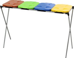 Stojak Pako jest przystosowany do używania worków o pojemności od 120 do 240 litrów, co zwiększa jego wszechstronność i pozwala na dostosowanie do indywidualnych potrzeb użytkowników. Zdejmowane pokrywy ułatwiają czyszczenie, a składana konstrukcja umożliwia wygodne przechowywanie, gdy nie jest używany.