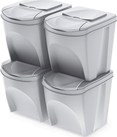 Prosperplast SORTIBOX zestaw czterech koszy pojemników do segregacji śmieci 4x25l z możliwością ułożenia w słupku jeden na drugim.Specyfikacja: