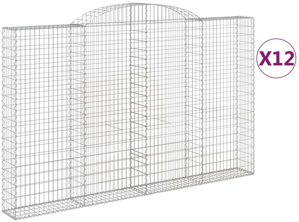 Kosze gabionowe, 12 szt, 300x30x180/200cm, galwanizowane żelazo