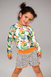 Koszulka UV dziewczęca 98-104 Komfort i bezpieczeństwo na słońcu – ochrona UV z certyfikatem Oeko-Tex Szukasz wygodnej, trwałej i stylowej ochrony przeciwsłonecznej dla swojego dziecka? Dziecięca koszulka uv Ducksday to must-have każdego lata! Wykonana z miękkiego, elastycznego i szybkoschnącego materiału, zapewnia maksymalną ochronę UPF 50+ – blokuje ponad 97% szkodliwych promieni słonecznych. Koszulka do wody, pływania, idealna na plażę, basen, sprawdzi się zarówno w słodkiej, słonej, jak i chlorowanej wodzie. Ta lekka i oddychająca dziewczęca koszulka UV, sprawdzi się w każdej letniej przygodzie – na wycieczki, zabawy w ogrodzie, rower czy górskie spacery. Zalety dziewczęcej koszulki uv UPF 50+ Ducksday: Najwyższy poziom ochrony przeciwsłonecznej UPF 50+ – bez konieczności stosowania kremu z filtrem pod ubraniem Oddychający, szybkoschnący i odporny na chlor materiał Miękki, dopasowany krój – wygodny w ruchu i zabawie Wzory, które dzieci kochają – i pasujące do reszty kolekcji Ducksday (kąpielówki, szorty, bermudy, kapelusze UV) Certyfikat Oeko-Tex Standard 100 Class 1 – w pełni bezpieczna dla skóry najmłodszych dzieci Dzięki technologii Archroma® materiał koszulki skutecznie odbija promieniowanie UV, a jego trwałość sprawia, że zachowuje ochronę nawet po wielu praniach i w wodzie. Skład materiału: 90% poliester, 10% elastan Właściwości: elastyczność, oddychalność, szybkie schnięcie, odporność na chlor Dostępne rozmiary: 92–98 (2 lata), 98–104 (3–4 lata), 110–116 (5–6 lat), 122–128 (7–8 lat), 134–140 (9–10 lat), 146–152 (11–12 lat), 158–164 (13–14 lat) Koszulka dziewczęca 98-104 do pływania i w góry Dziewczęca koszulka do pływania UV Ducksday to idealna ochrona przeciwsłoneczna. Nie tylko chroni, ale też zapewnia swobodę i styl w czasie każdej wakacyjnej przygody. Możesz ją łatwo skompletować z kąpielówkami, szortami, bermudami lub kapeluszem UV w tym samym wzorze – dla pełnego, bezpiecznego looku! Jedna koszulka UPF50+ a tak wiele funkcji i zastosowań! To więcej niż tylko T-shirt UV – to praktyczny element wakacyjnej garderoby, który sprawdzi się w każdych warunkach. To: koszulka dziewczęca na rower, koszulka dziewczęca w góry, koszulka dziewczęca do pływania i zabaw w wodzie, koszulka dziewczęca na plażę, koszulka dziewczęca UV do codziennego użytku w słoneczne dni. Wygodna, szybkoschnąca, oddychająca i przede wszystkim skutecznie chroniąca delikatną skórę dziecka przed szkodliwym promieniowaniem UV (UPF 50+), nawet po wielokrotnym praniu. Idealna dla dziewczynki w rozmiarze 98-104 cm.