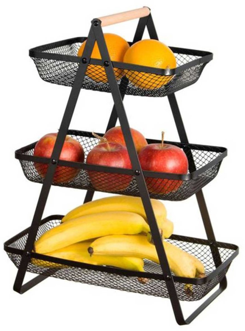 Trzypoziomowy koszyk na pieczywo, owoce lub warzywa warzywa w stylu loft. Wykonany z metalu. Znajdzie zastosowanie w każdej kuchni ale równie pięknie będzie prezentował się w jadalni czy salonie. Posiada wygodny uchwyt ułatwiające przenoszenie. Szerokość: 18 cm Wysokość: 47 cm Długość: 34 cm Kolor: czarny mat Nowoczesny design Waga: 1,3 kg Koszyk jest wielofunkcyjny i może być również wykorzystywany do przechowywania drobnych produktów codziennego użytku, kosmetyków czy artykułów biurowych. Jest stabilny, praktyczny i poręczny, wyposażony w wygodny uchwyt, które ułatwia przenoszenie.