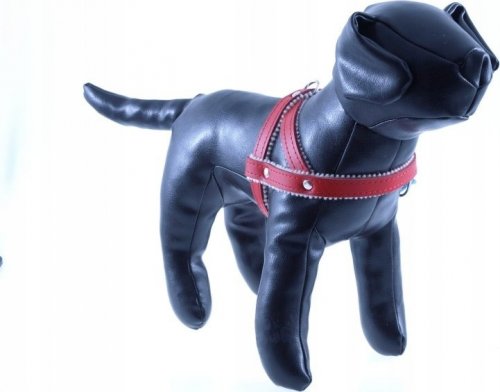 Czerwony kolor szelek KOZŁOWSKI wyróżnia się na tle innych akcesoriów, dodając charakteru Twojemu psu. To doskonały wybór dla tych, którzy pragną, aby ich pupil wyglądał modnie i elegancko.