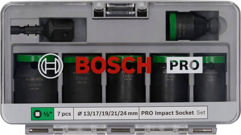 Zestaw nasadek udarowych PRO Impact Socket Set od firmy Bosch to doskonałe rozwiązanie zarówno dla profesjonalistów, jak i hobbystów, którzy potrzebują niezawodnych narzędzi do intensywnych prac. W skład zestawu wchodzi 7 nasadek o średnicach od 13 mm do 24 mm oraz dwa adaptery, co sprawia, że idealnie nadaje się do warsztatów, serwisów oraz przy konstrukcjach stalowych i betonowych.