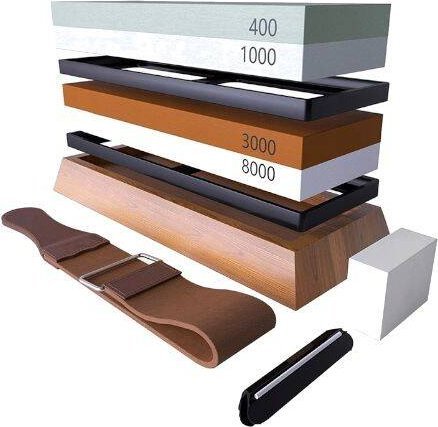 Zestaw zawiera kamienie wodne o gradacjach 400/1000 oraz 3000/8000. Kamień o gradacji 400/1000 doskonale nadaje się do wstępnego ostrzenia oraz naprawy ostrza, natomiast kamień 3000/8000 umożliwia precyzyjne wykończenie i polerowanie. Dzięki różnorodności gradacji, użytkownik ma możliwość dostosowania procesu ostrzenia do swoich indywidualnych potrzeb.