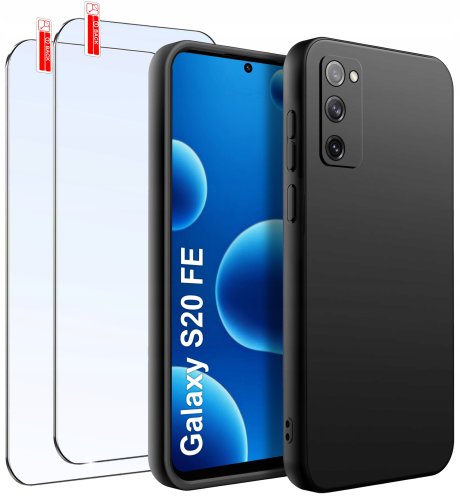 krainaGSM Etui do Samsung S20 FE | Matowe Czarne Silikon Slim + 2 SZTUKI SZKŁO