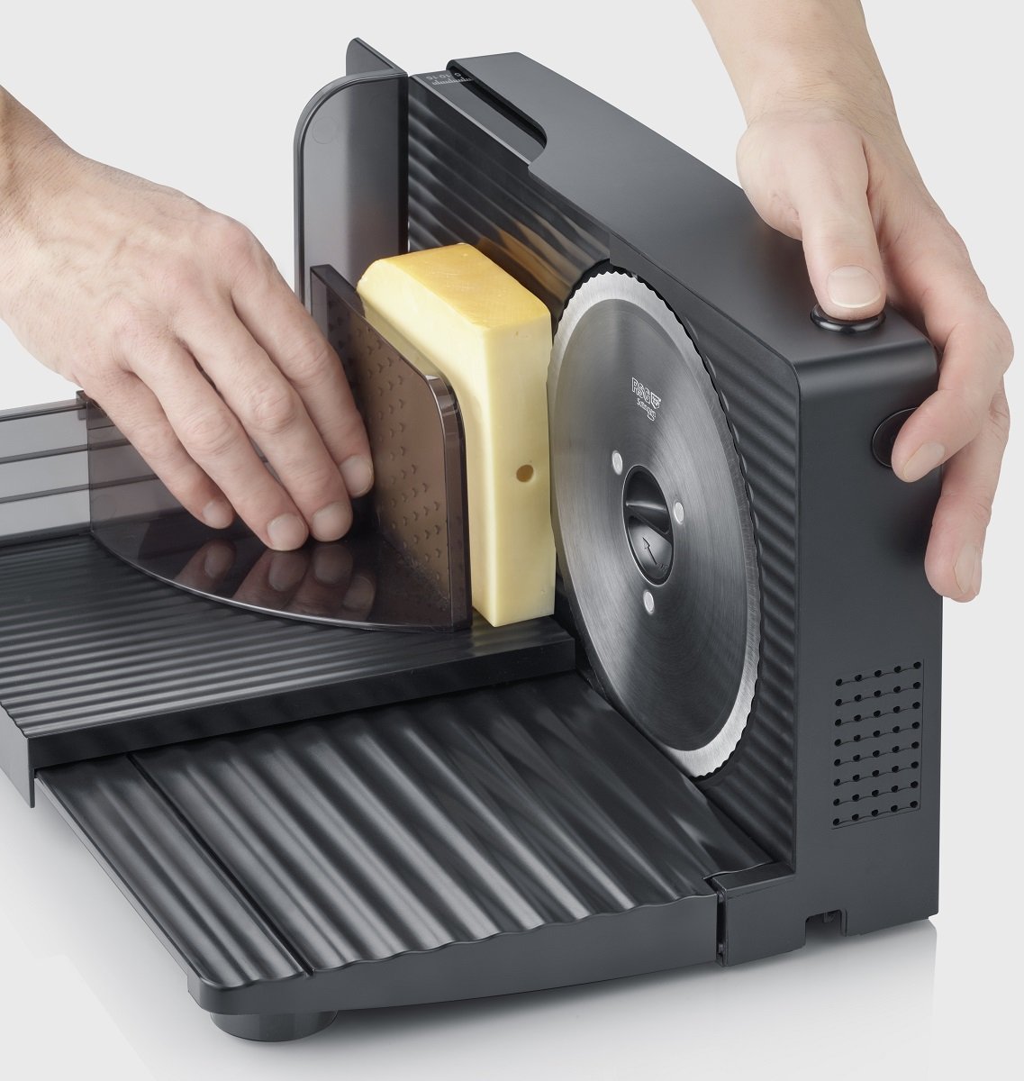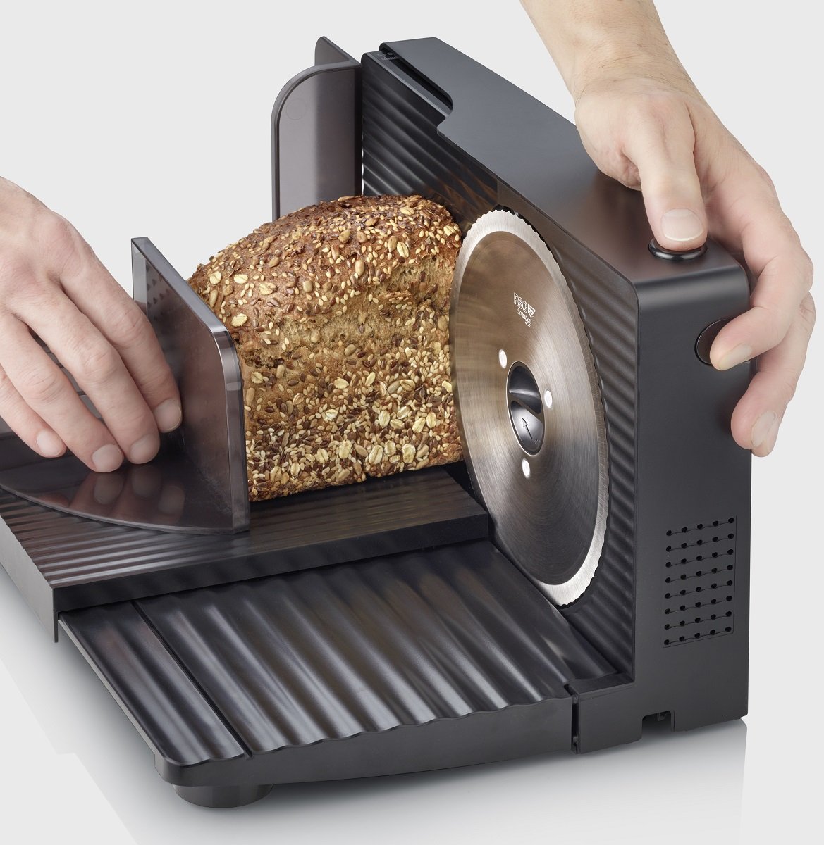 Zasilana silnikiem o mocy 100 W , krajalnica oferuje elektroniczną kontrolę grubości, co pozwala na precyzyjne dostosowanie plastrów do własnych preferencji. Maksymalna grubość krojenia wynosi 1,5 cm, co umożliwia krojenie zarówno cienkich plasterków wędlin, jak i grubszych kromek chleba. Obsługę ułatwia prosty przełącznik WŁ/WYŁ.